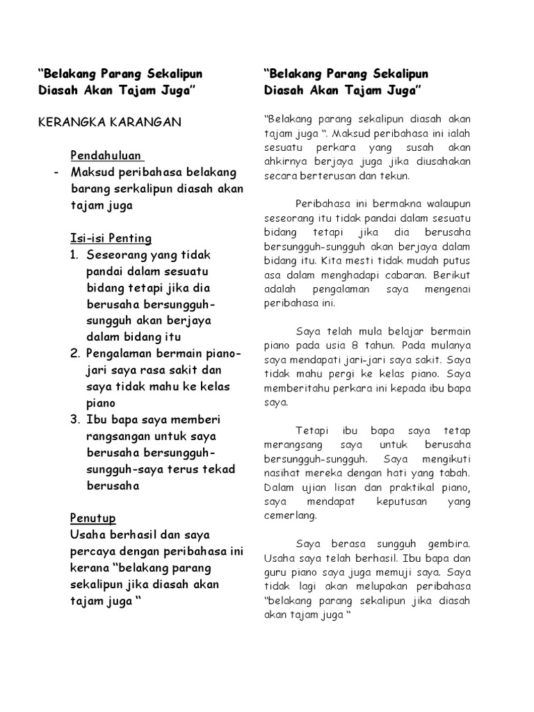 INFO PENDIDIKAN Arti Peribahasa Belakang Parang Lagi Jika Diasah Niscaya Tajam. Begitulah belakang parah diasah lagikan tajam inikan pula manusia. CONTOH KARANGAN 5.